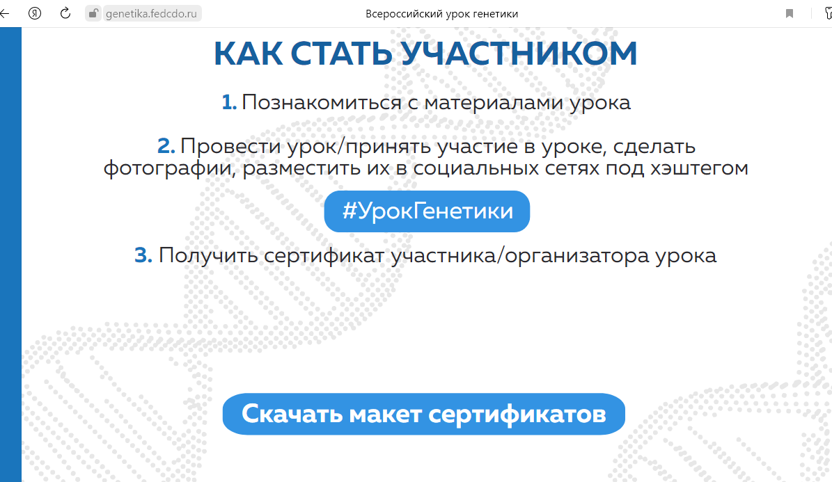 23 апреля 2021 г. прошел Всероссийский урок генетики