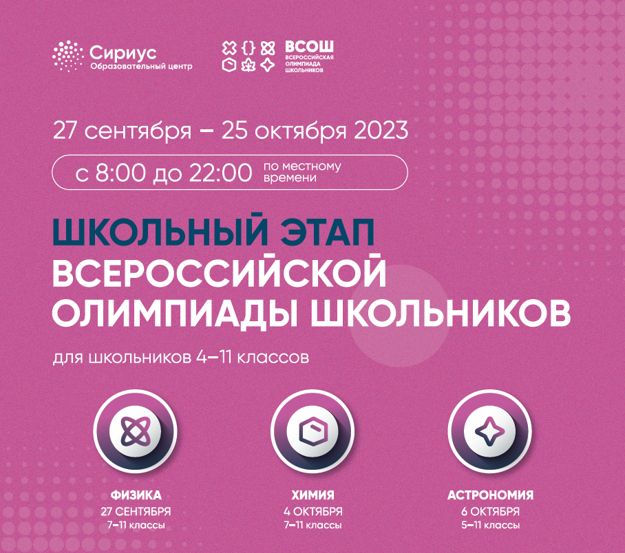 Следить за информацией о турах школьного этапа можно на сайте siriusolymp.ru и в социальных сетях.